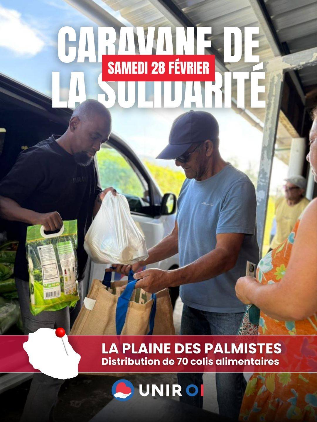 Ce matin, la Caravane de la Solidarité d’UNIR Océan Indien faisait étape à La Plaine des Palmistes, où 70 colis alimentaires ont été distribués aux familles dans le besoin.